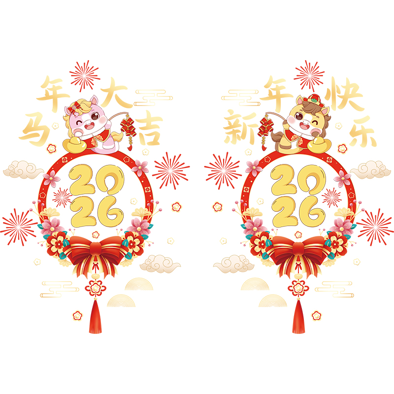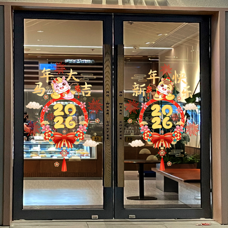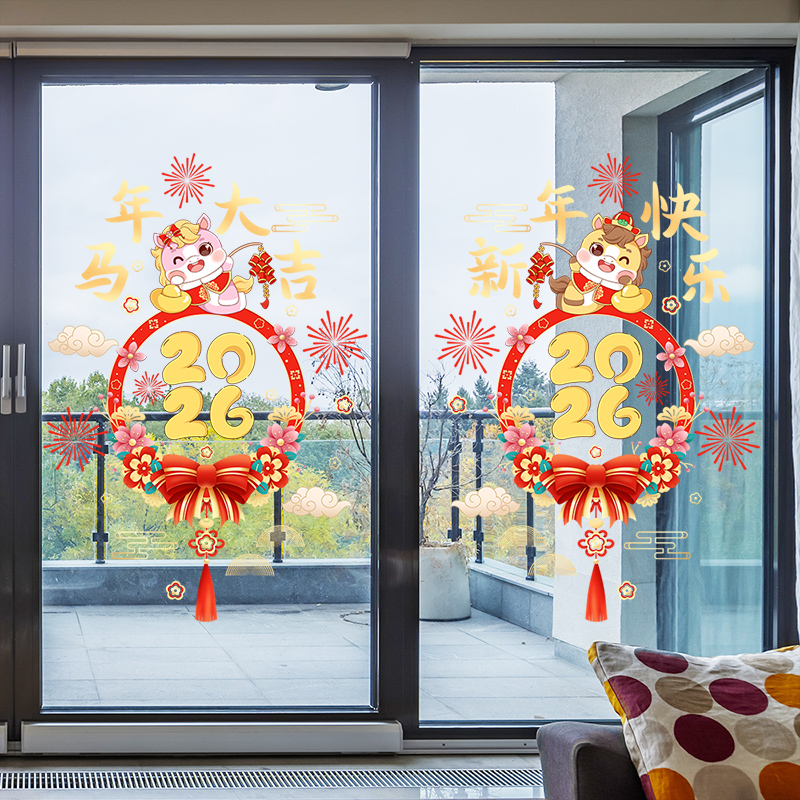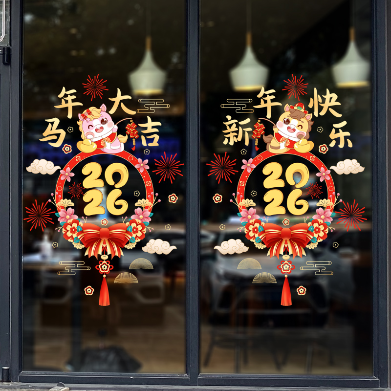 2026新年装饰品玻璃门贴纸春节过年新款窗花马年厨房静电门窗贴画