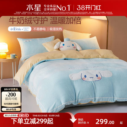 水星家纺牛奶绒四件套儿童卡通三件套宿舍珊瑚绒床单被套床上用品