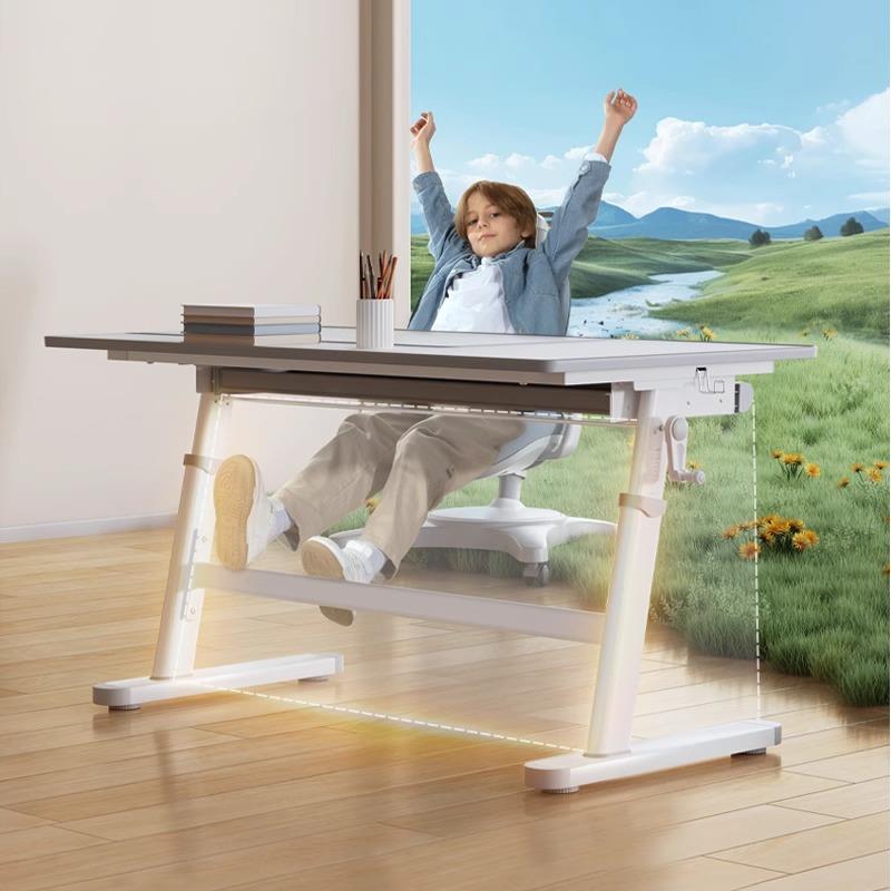 儿童学习桌椅套装家用实木书桌电动升降写字桌子可调节小学生课桌