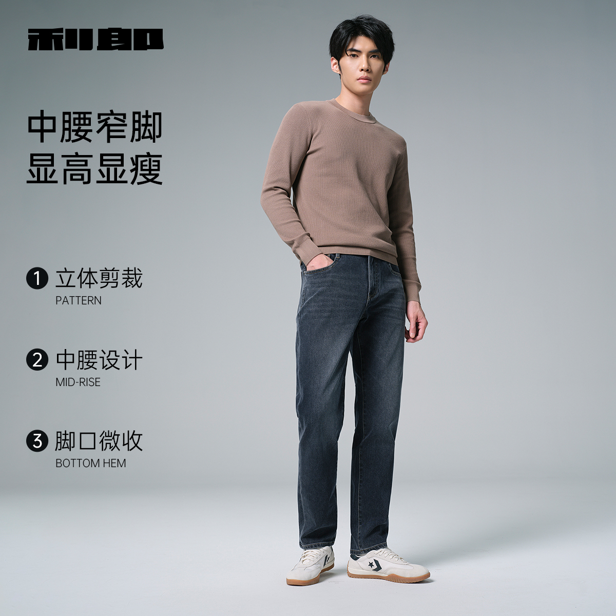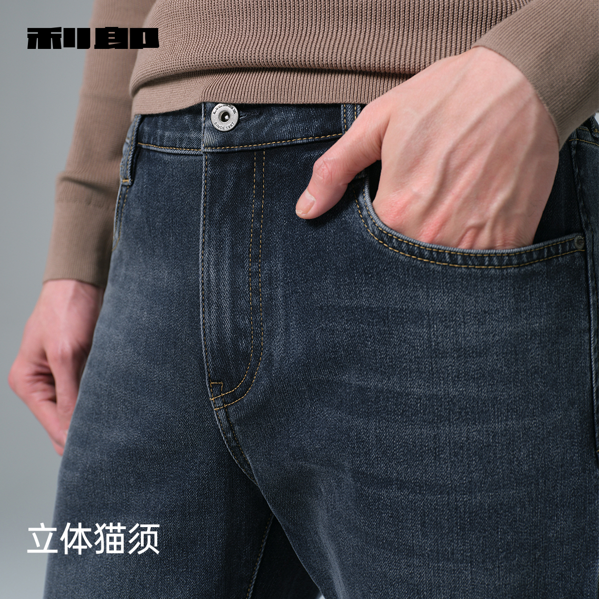 【内里抓绒】利郎官方 四面弹牛仔裤男士2025冬季新款保暖裤子男