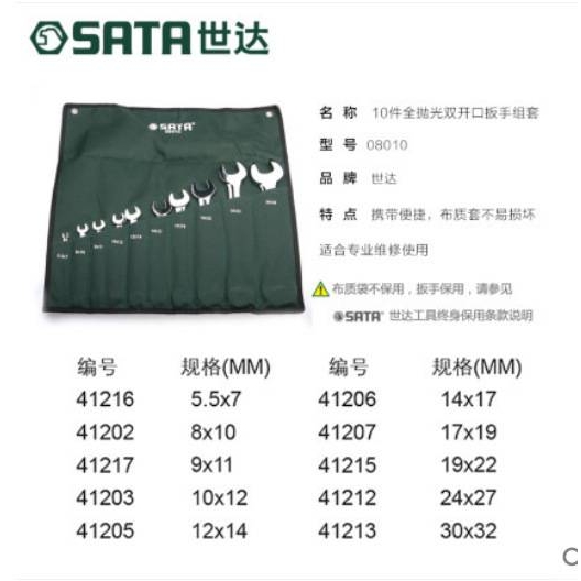 世达sata汽修工具组合套装10件全抛光呆扳手双开口套筒扳手08010