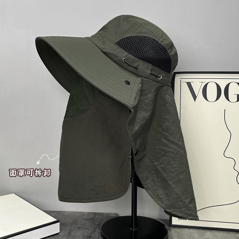 防晒遮脸渔夫帽子男女夏季户外钓鱼登山透气护脖防紫外线遮阳帽潮