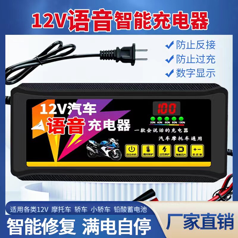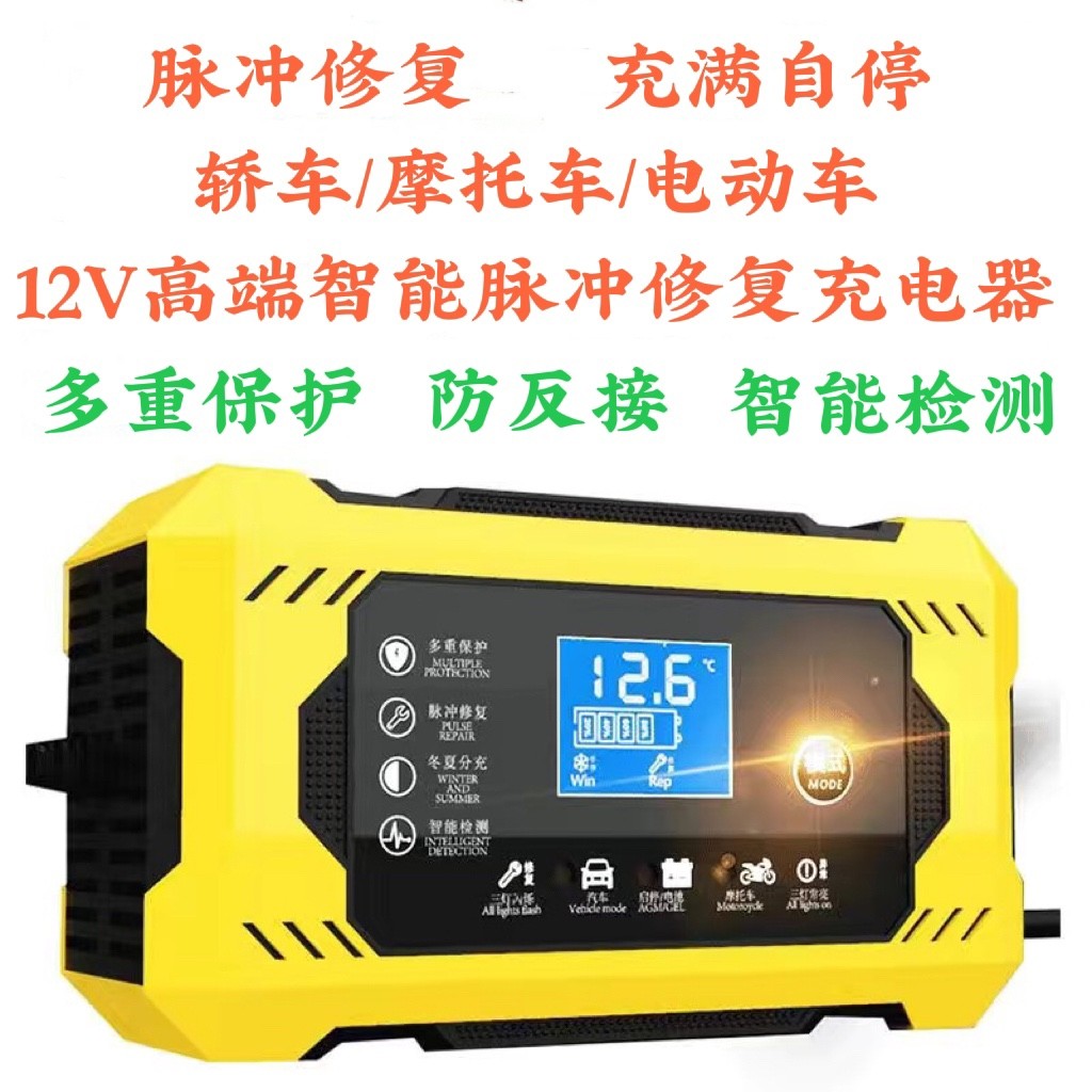 12V伏汽车小货车轿车摩托车电动车电瓶充电器水干蓄电池智能通用