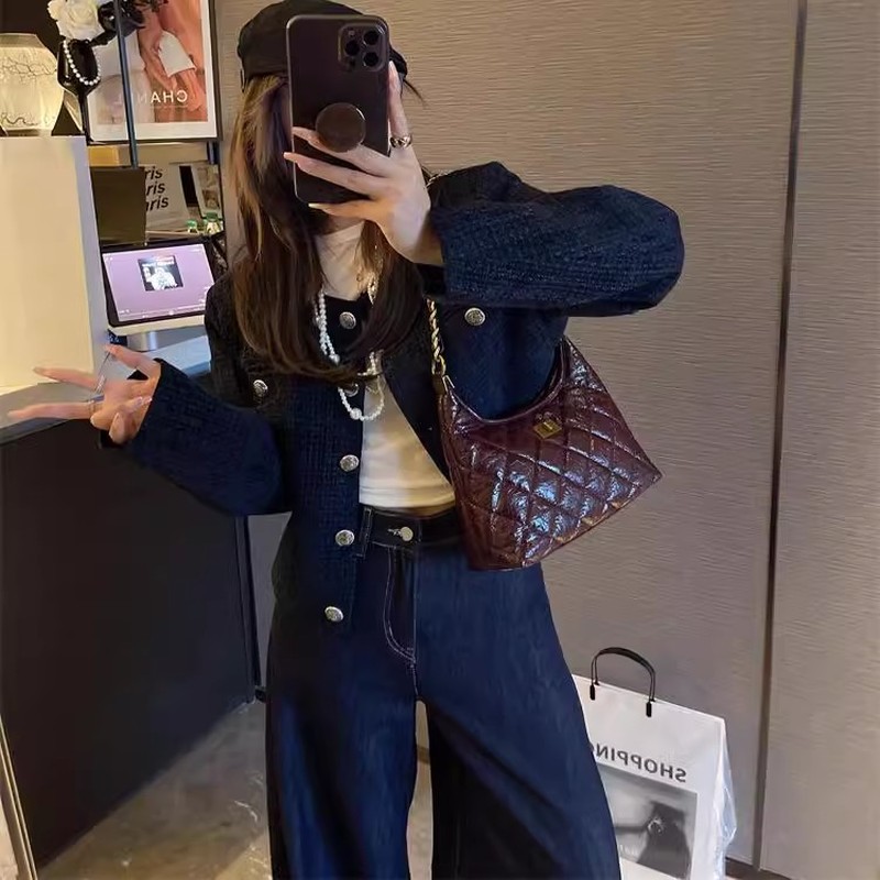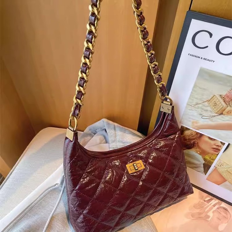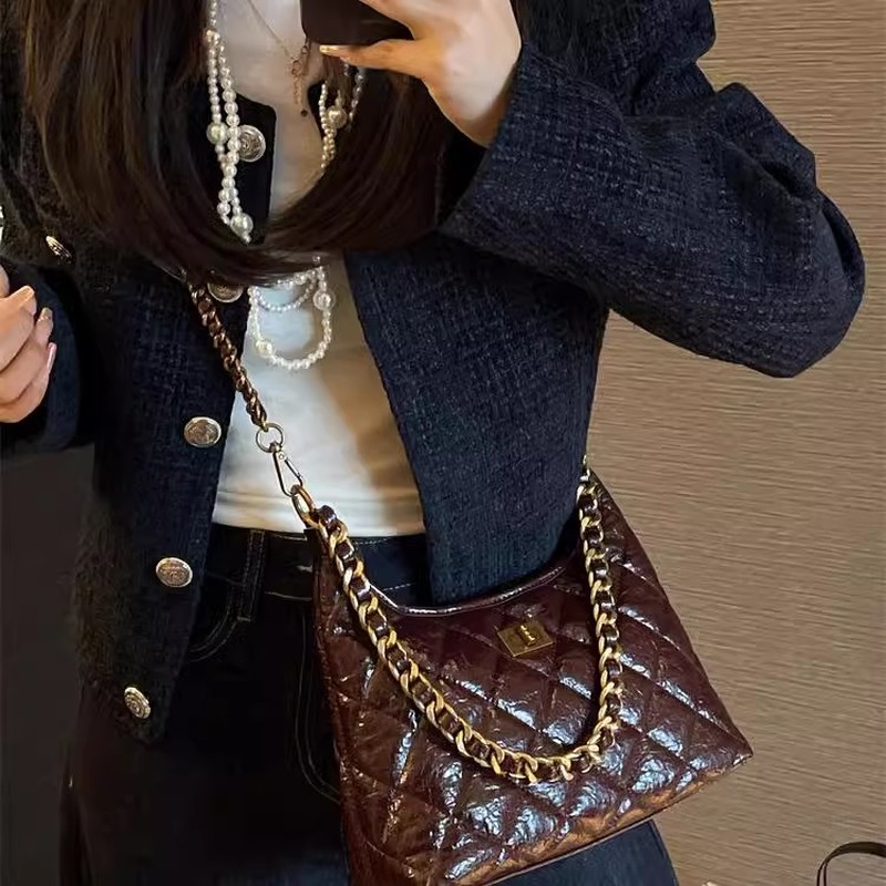法式高级感小香风菱格女包MK DA2025春新款链条腋下包真皮斜挎包