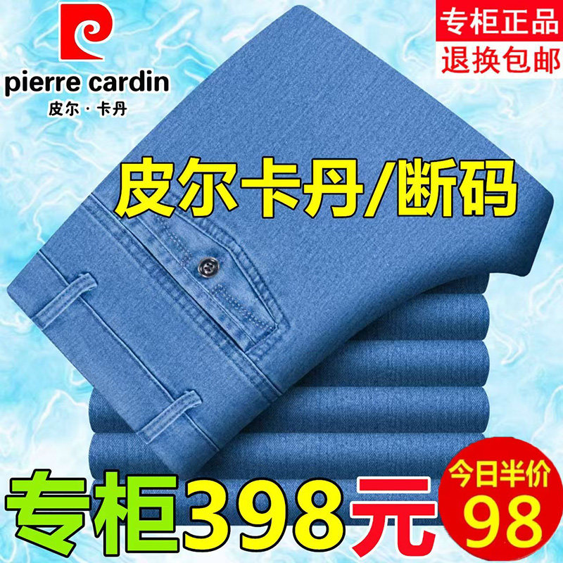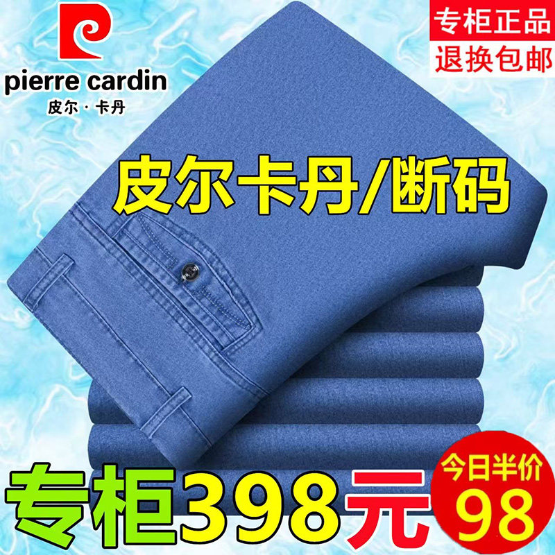 皮尔卡丹牛仔裤男秋冬厚款中老年宽松直筒弹力男士裤子爸爸长裤子