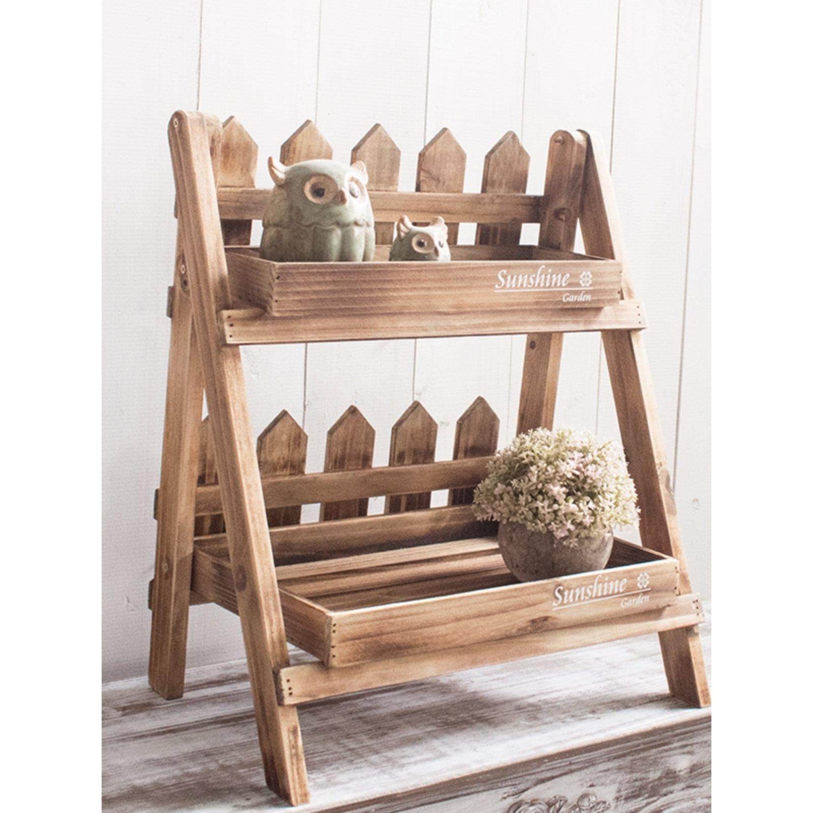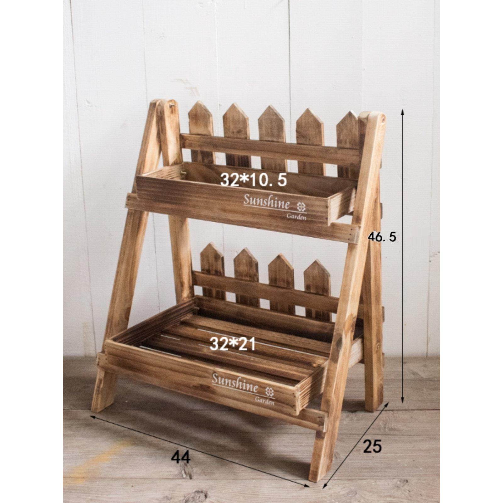 桌面实木2层小花架花园多肉盆架飘窗阳台植物置物架户外防腐花架