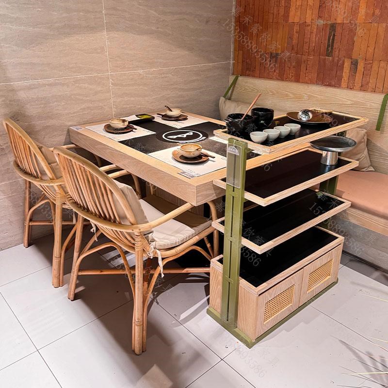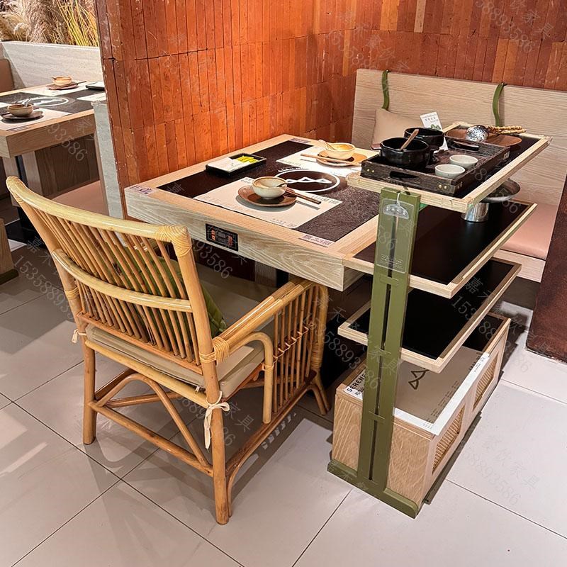 火锅桌子电磁炉一体三出山火烧石可定制无烟净化火锅店桌椅商用