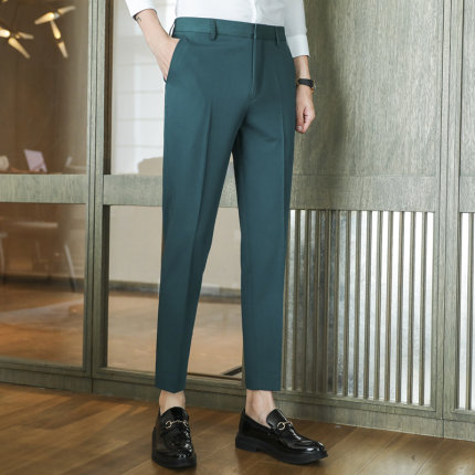 九分裤男秋季男士纯色休闲裤韩版潮流修身小脚裤商务西装裤男长裤