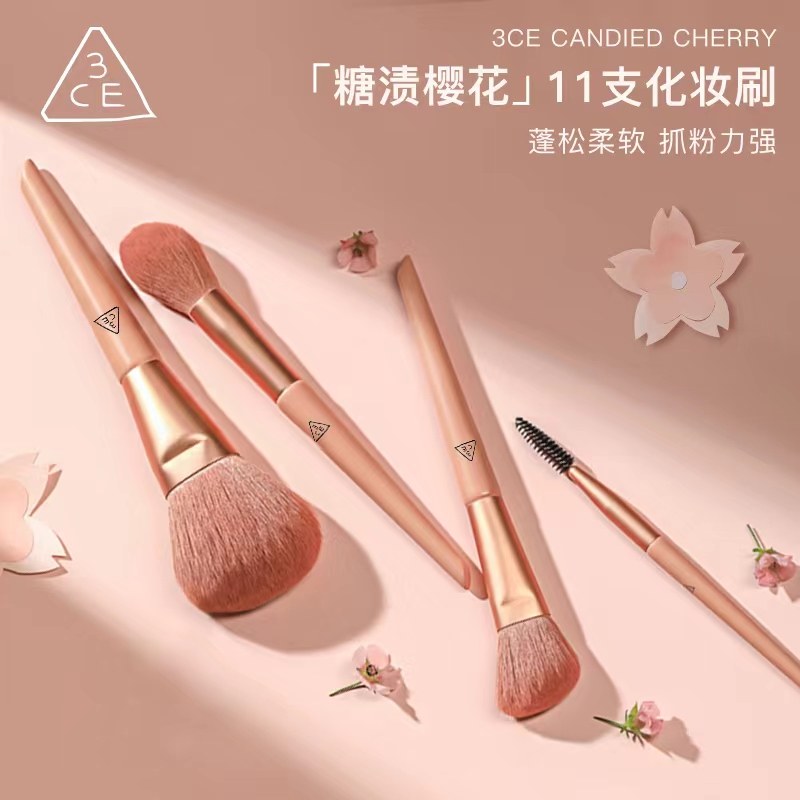 正品3CE化妆刷套装 糖渍樱花眼影刷腮红散粉刷 化妆工具便携套装