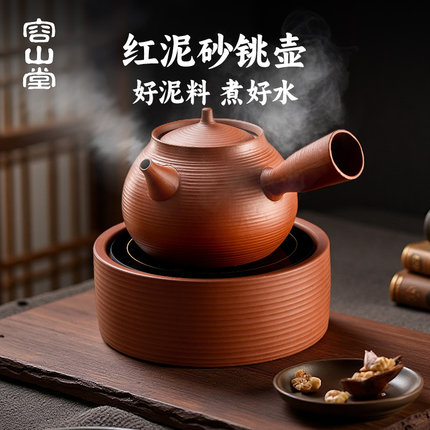 容山堂红泥砂铫泡茶壶2025新款烧水壶家用急须壶围炉煮茶壶煮茶炉