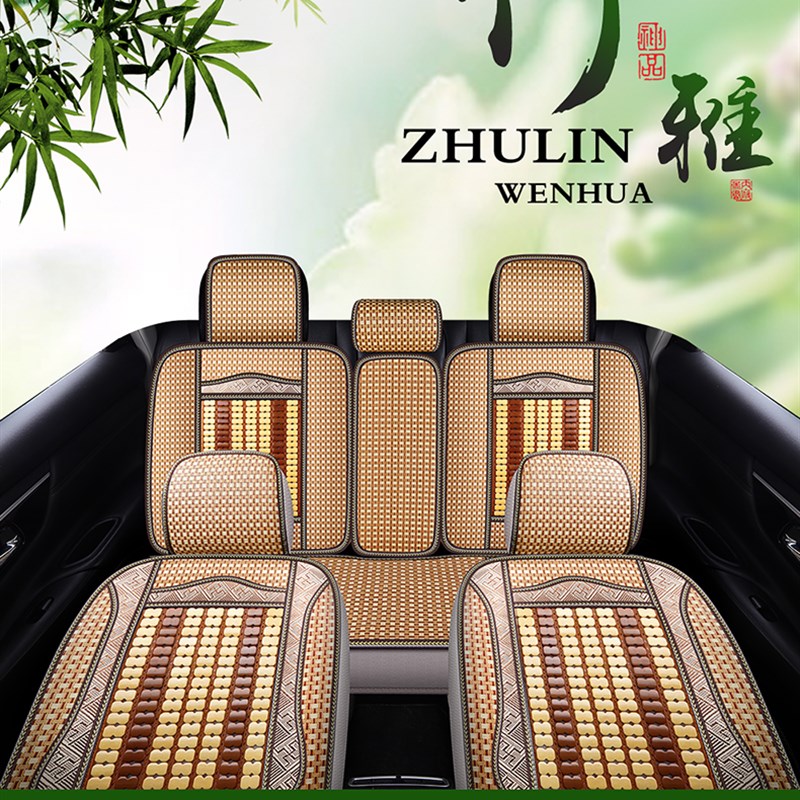 后排三人座单座汽车坐垫夏季凉垫透气凉席竹片木珠全包围轿车座套