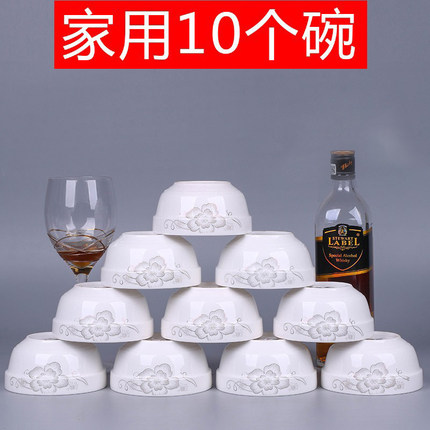 10个碗 4.5英寸家用中式吃饭碗 米饭碗陶瓷碗 小汤碗套装 可微波