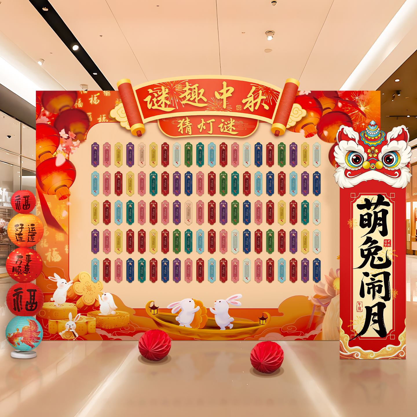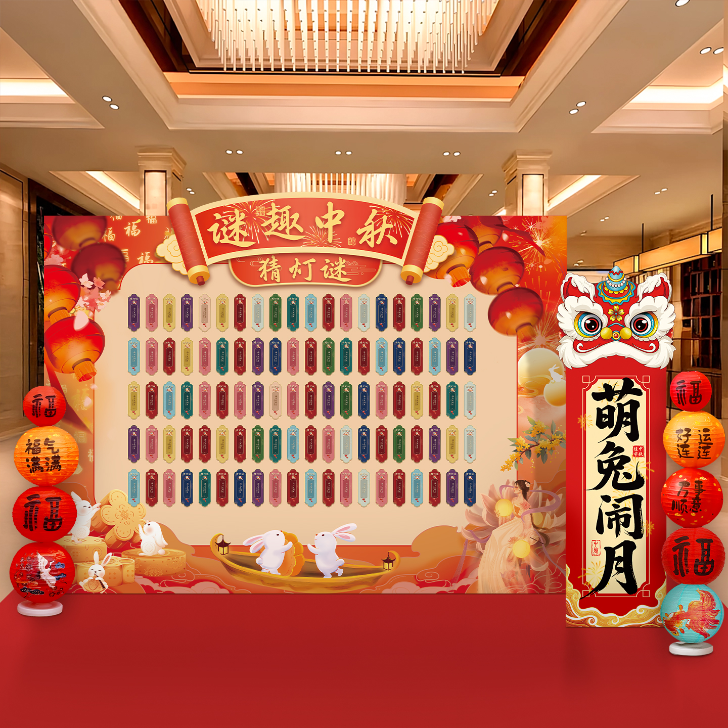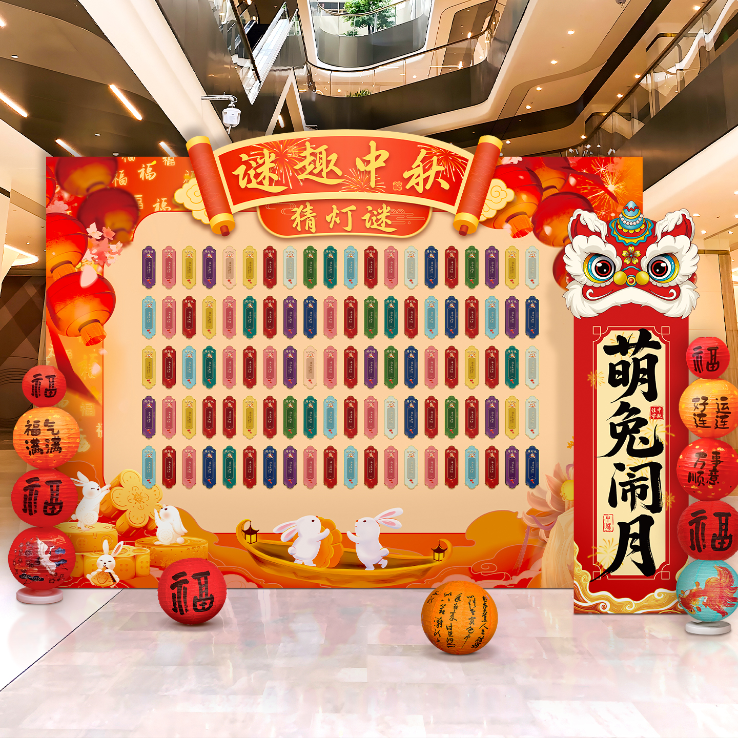 中秋国庆节氛围布置猜灯谜卡片商场社区活动打卡拍照道具KT背景板