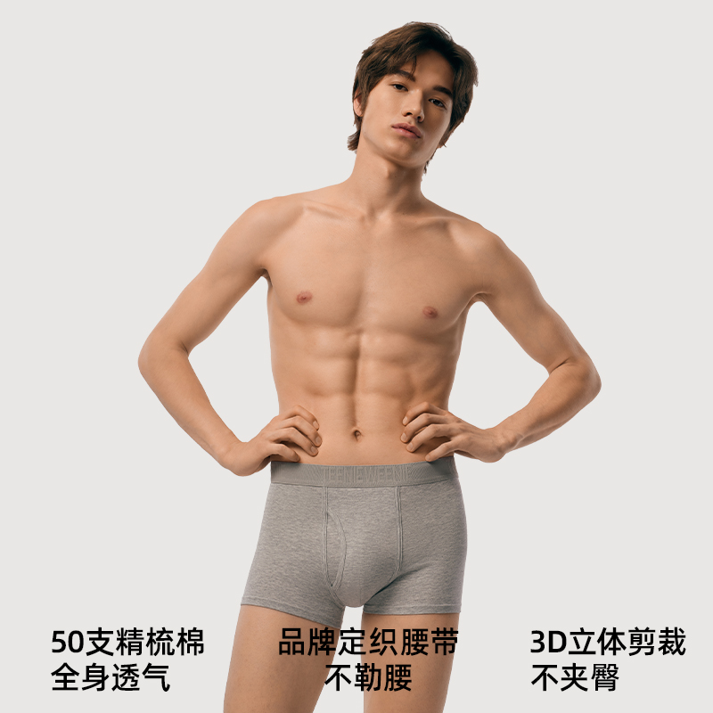 TeenieWeenie小熊男士新款平角内裤纯棉裆透气7A抗菌速干四角短裤