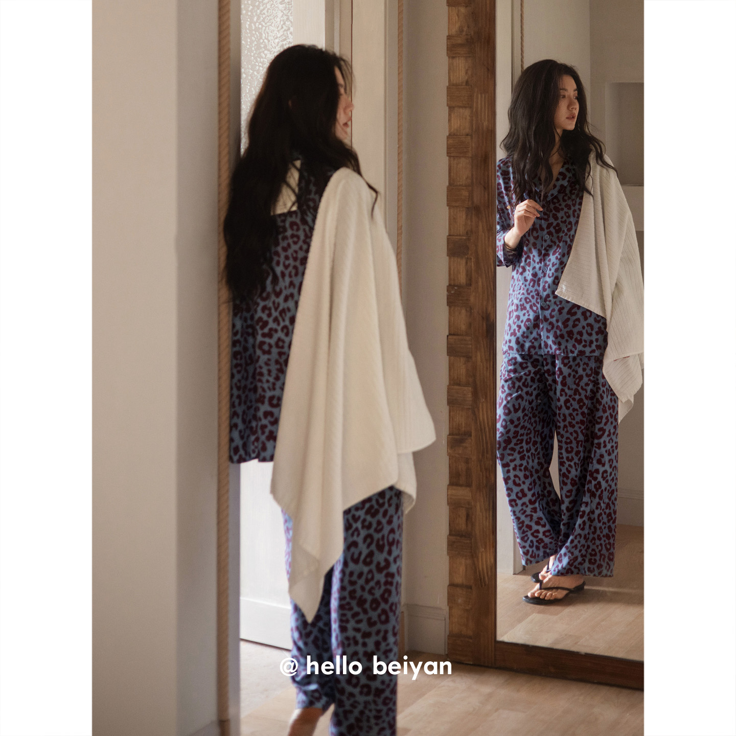 贝妍女秋季莫代尔棉长袖开衫睡衣