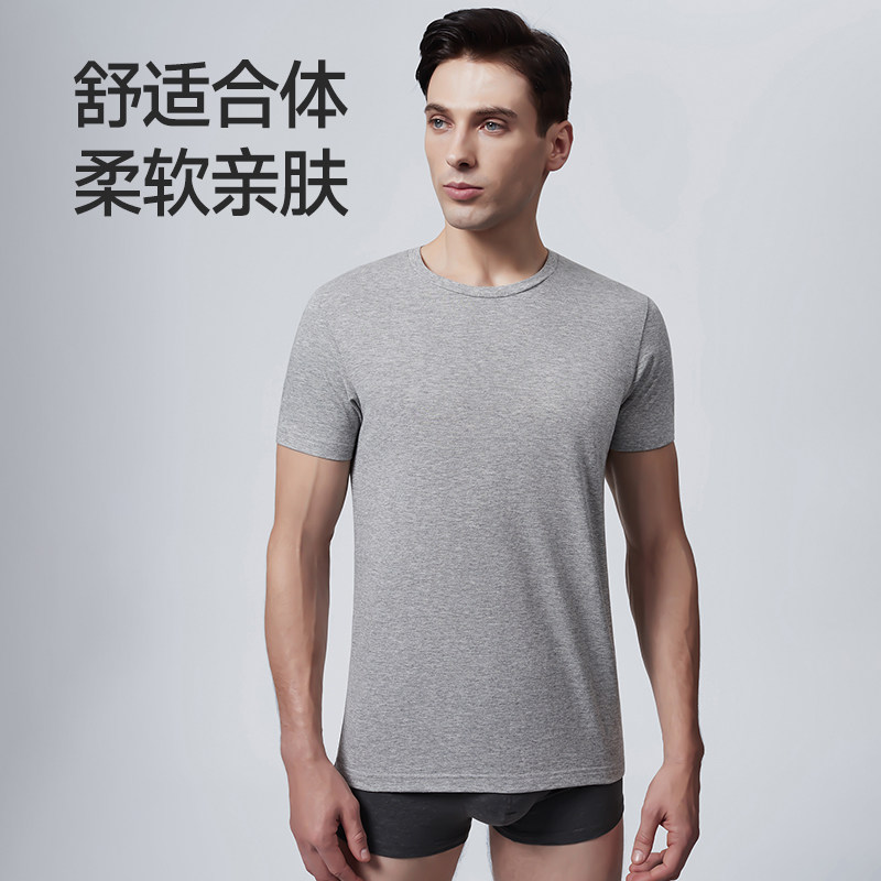 七匹狼男士睡衣纯棉短袖Tt恤单件上衣宽松内衣打底半袖男款家居服