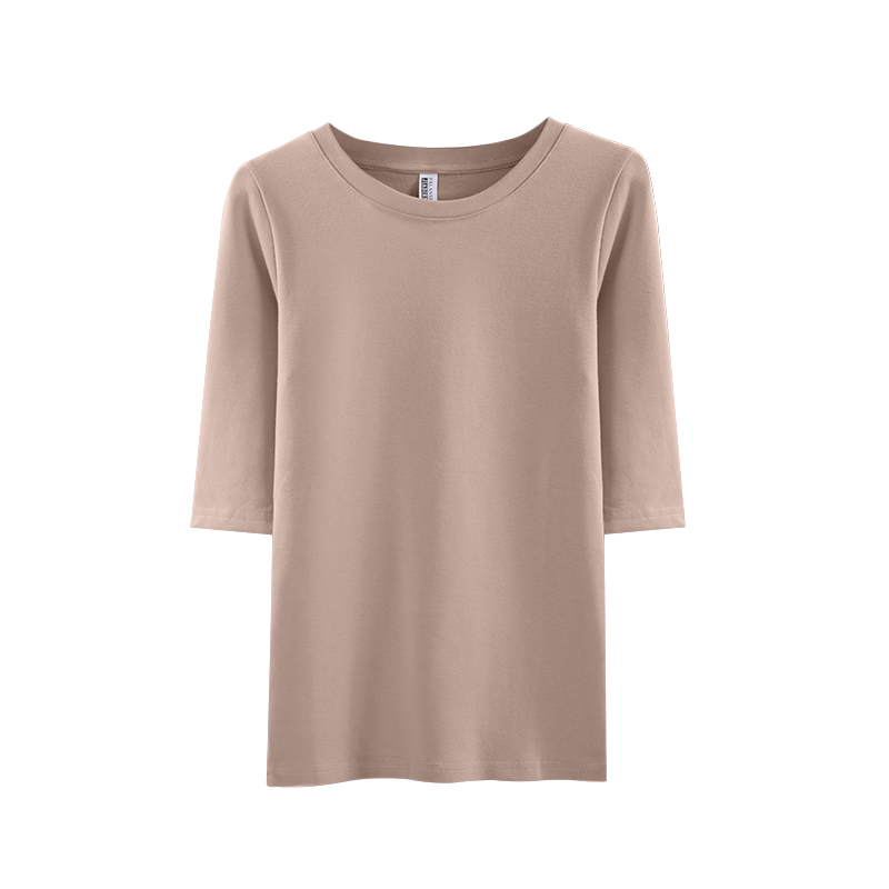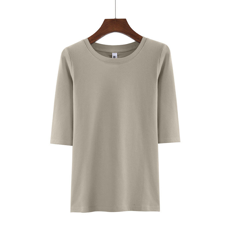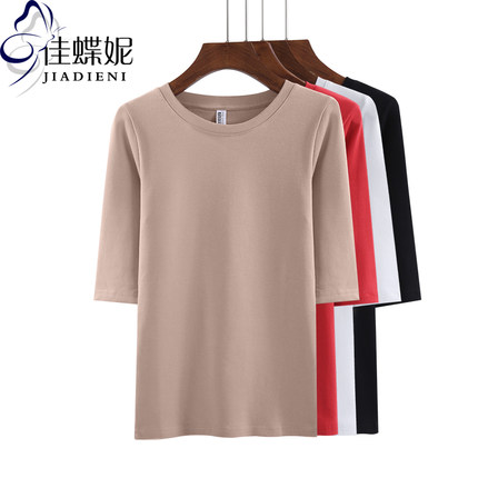 春秋新款韩版纯棉修身圆领中袖体恤女上衣内搭打底衫T恤纯色半袖
