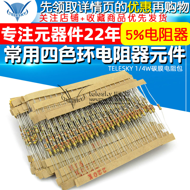 TELESKY 1/4W碳膜电阻包 5%常用四色环电阻器元件 43种每种20个
