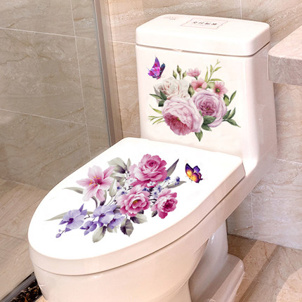 马桶装饰花朵防水墙贴纸韩国创意卡通浴室厕所马桶盖防污花纹贴画