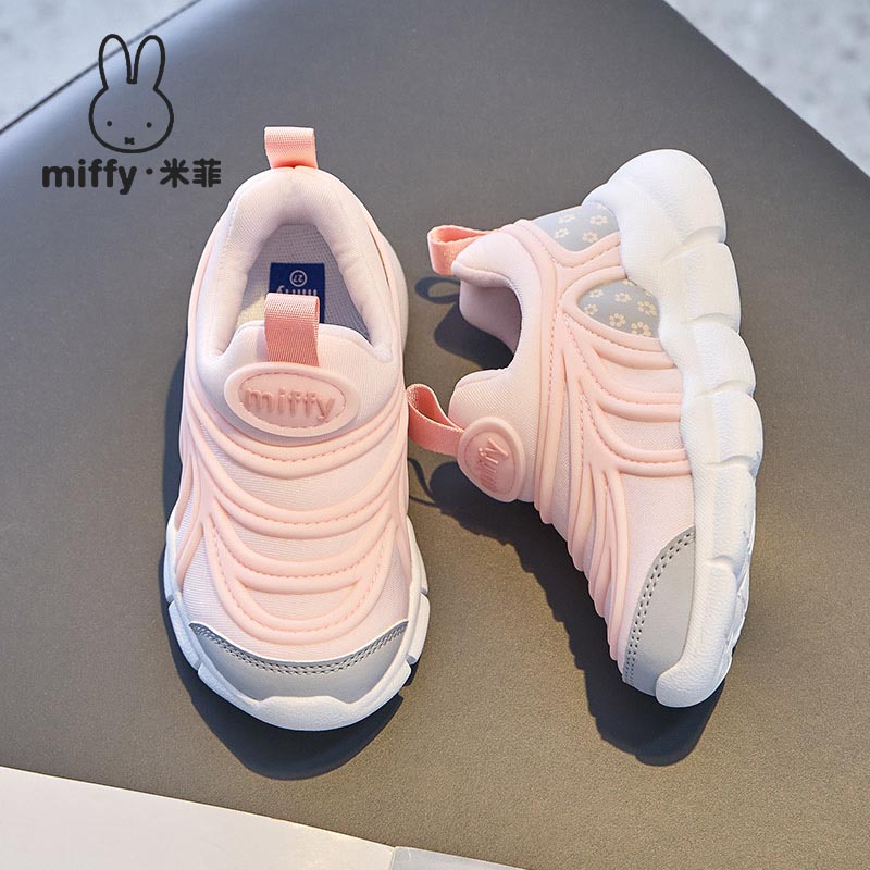 MIFFY米菲童鞋女童春秋款毛毛虫一脚蹬缓震跑步鞋透气休闲运动鞋