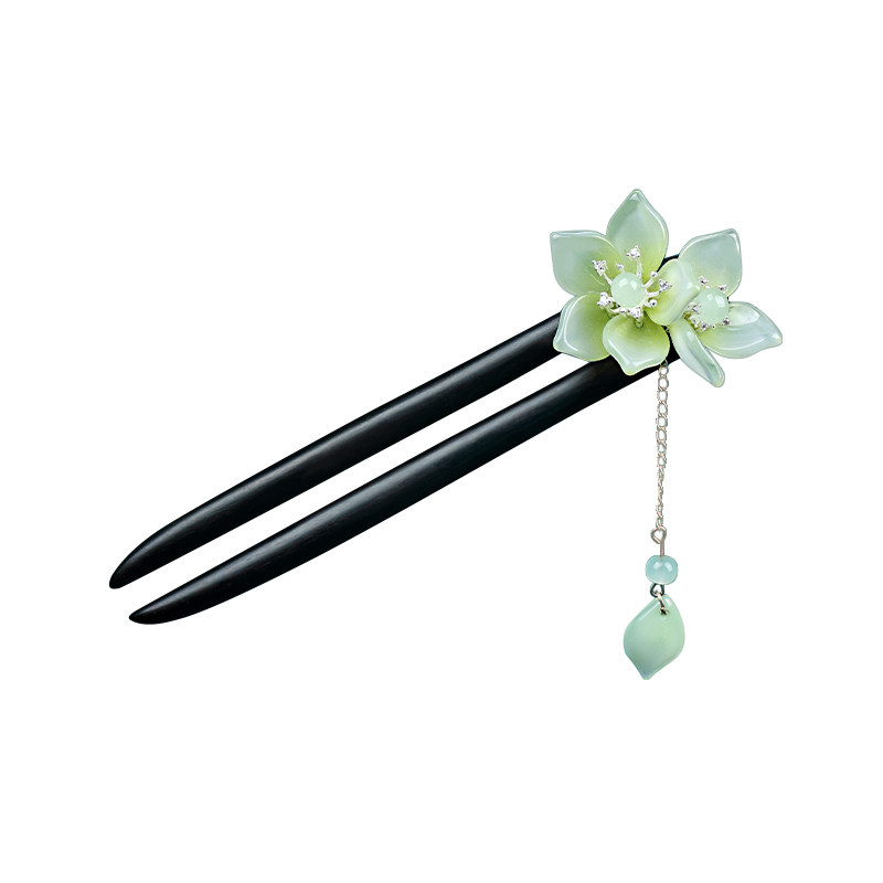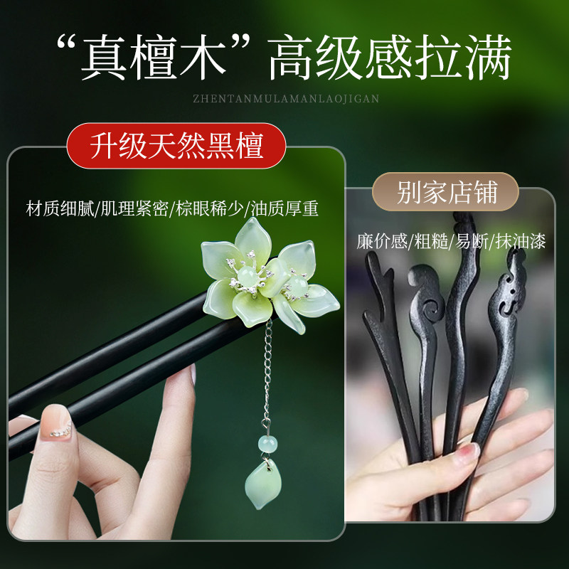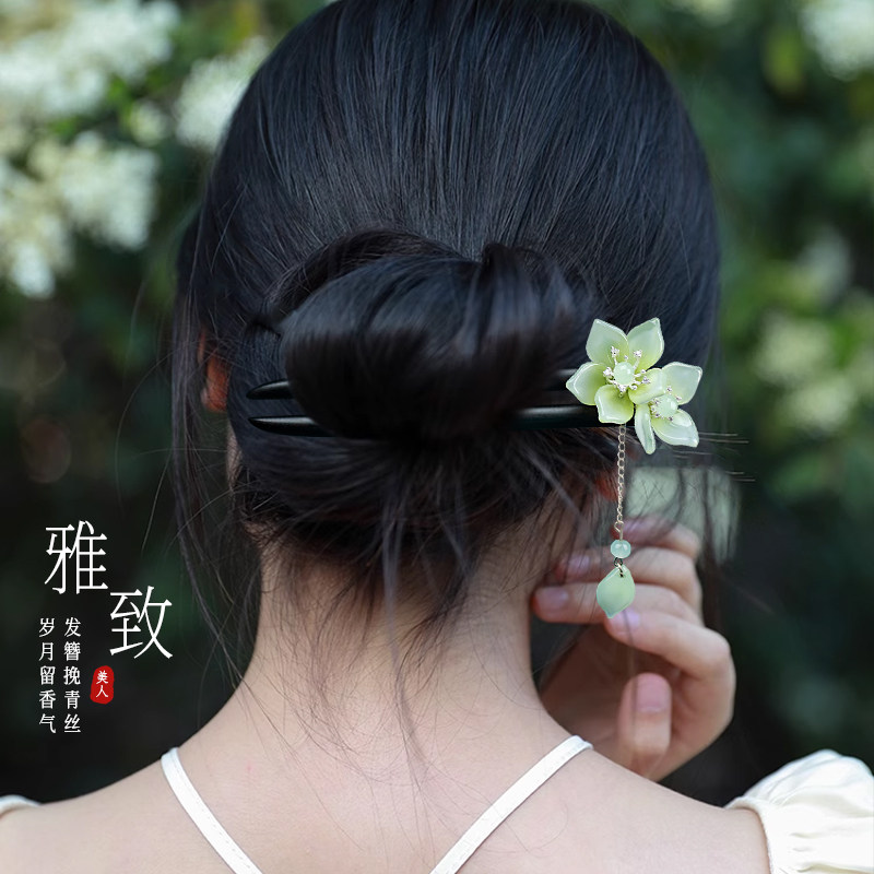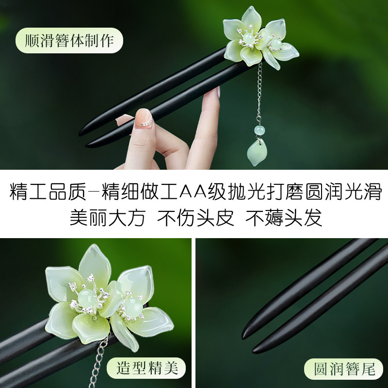 黑檀木u型双钗发簪女流苏步摇簪子高级国风中式新款发钗丸子头饰