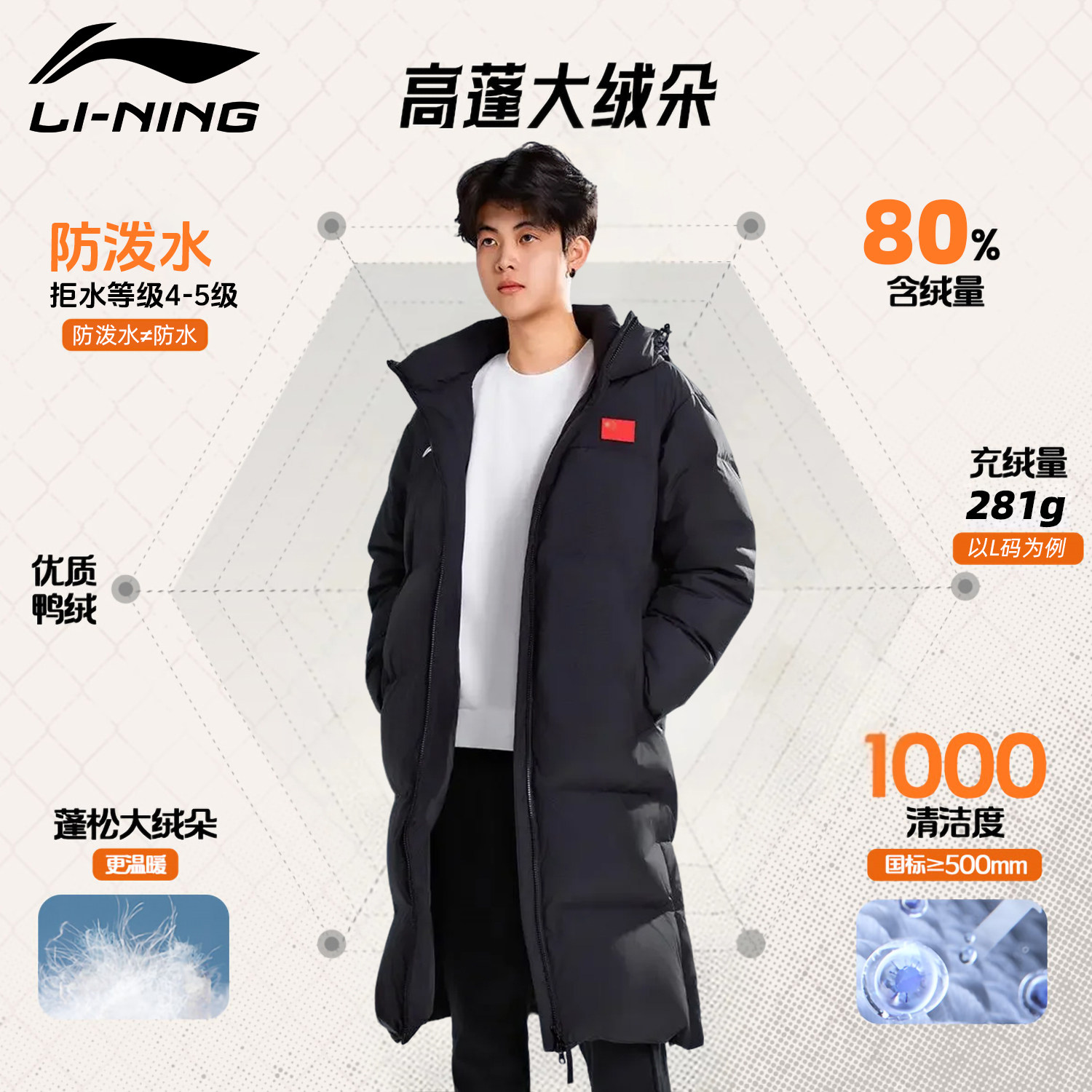 李宁长款羽绒服男款训练东北大衣