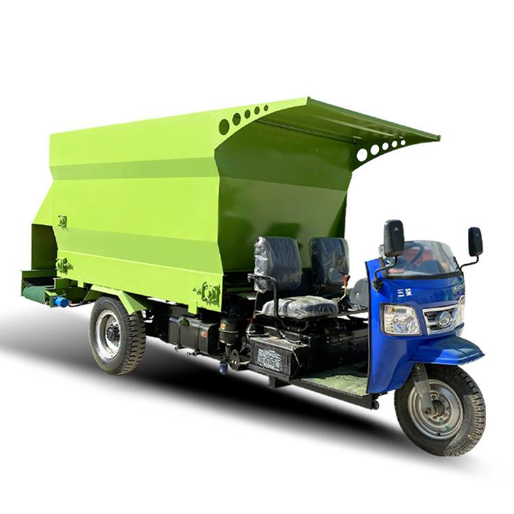 大功率羊场运草布料车刮板送料三轮式撒料车七立方大型牧区分草车