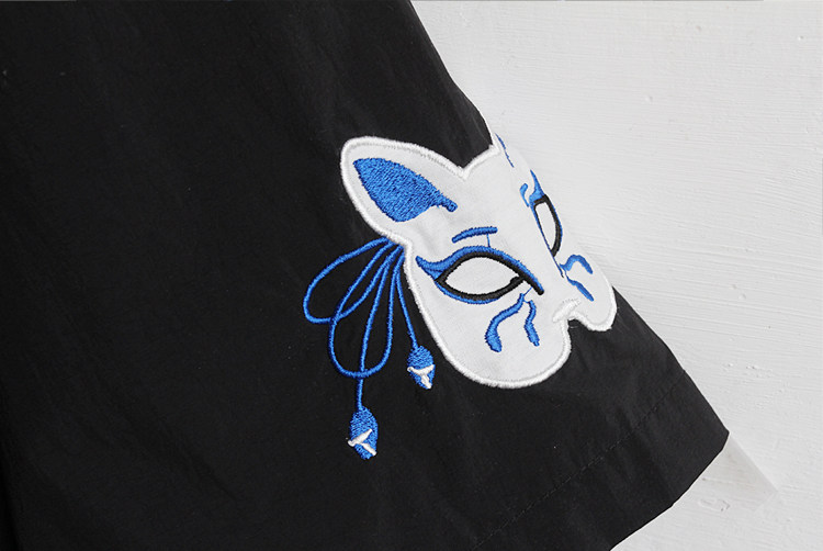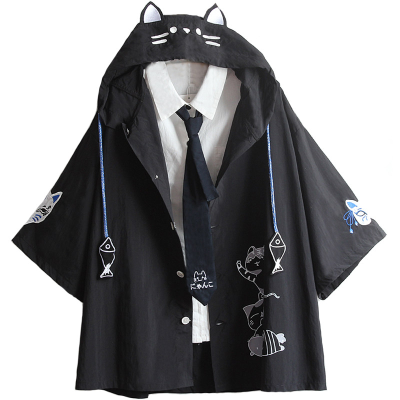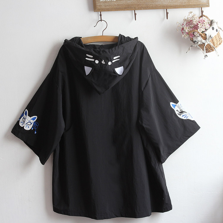 可爱帅气男女同款古风混搭狐狸猫面具贴布宽松耳朵连帽薄防晒外套