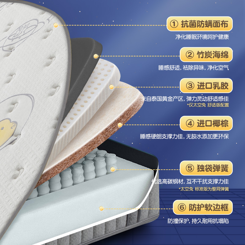 雅兰【M1】太空兔舒适版 儿童椰棕护脊床垫硬垫抗菌防螨独袋