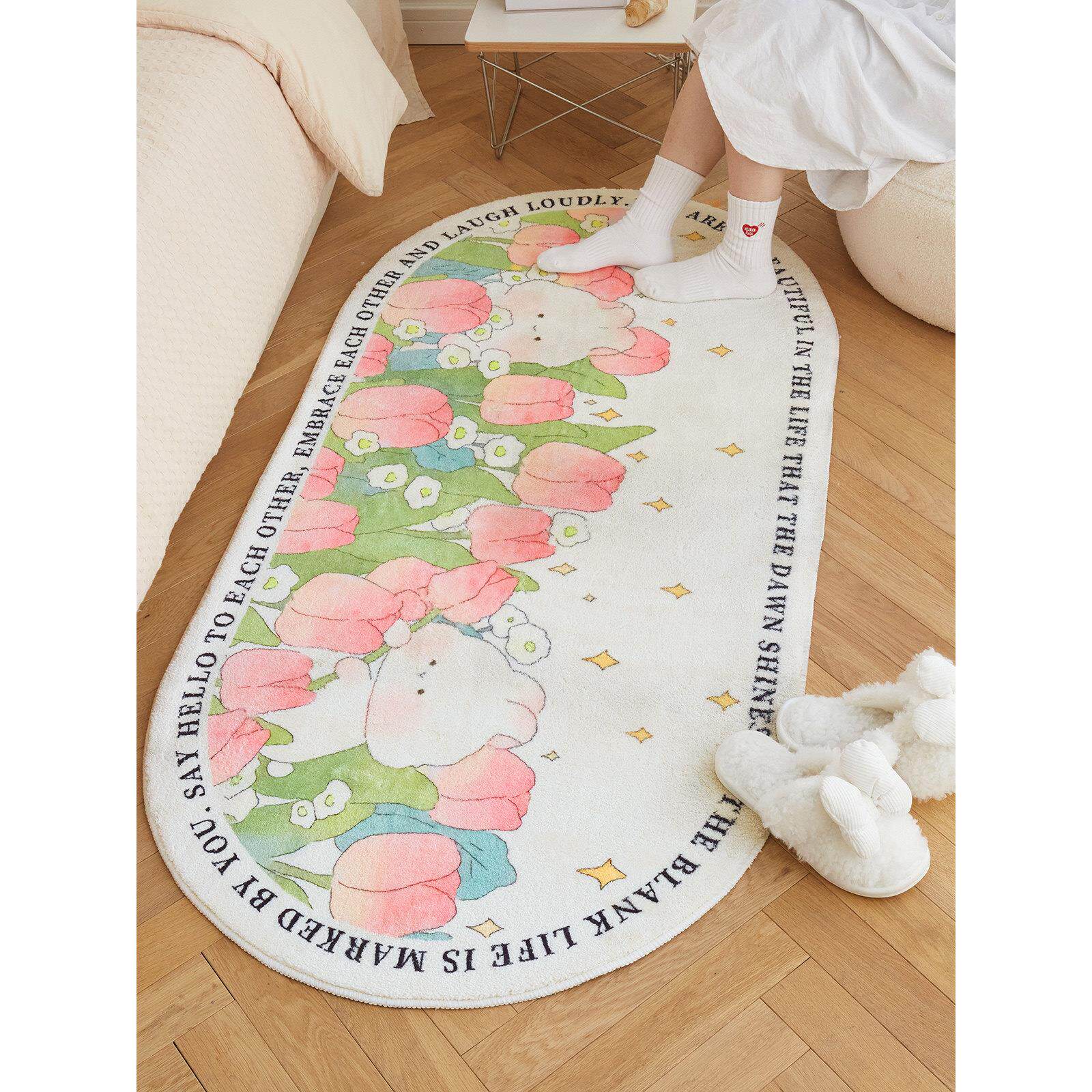 现代极简主义卧室床前毛毯公主房间家加厚地垫机洗床前地毯可爱的