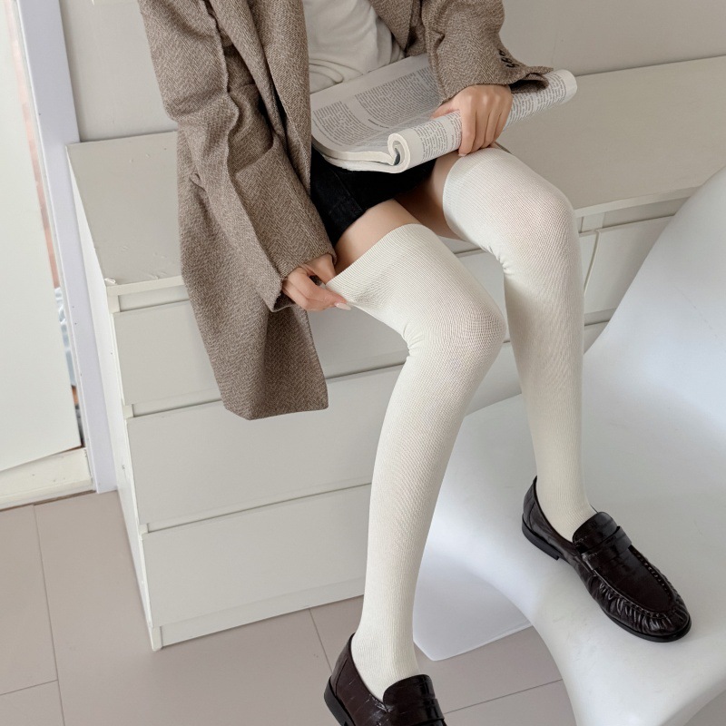 秋冬款棉质压力过膝袜搭小皮靴JK袜子女复古显瘦无骨高筒大腿