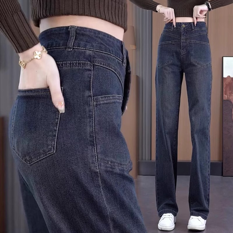 牛仔裤女裤子春秋季2025年新款潮高腰复古直筒长裤休闲垂感阔腿裤