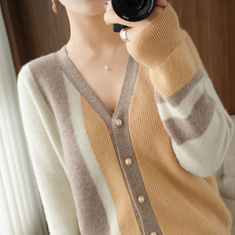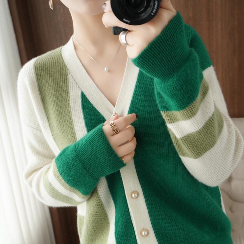 针织开衫V领宽松女士毛衣早春秋季2025年新款女装慵懒风上衣外套