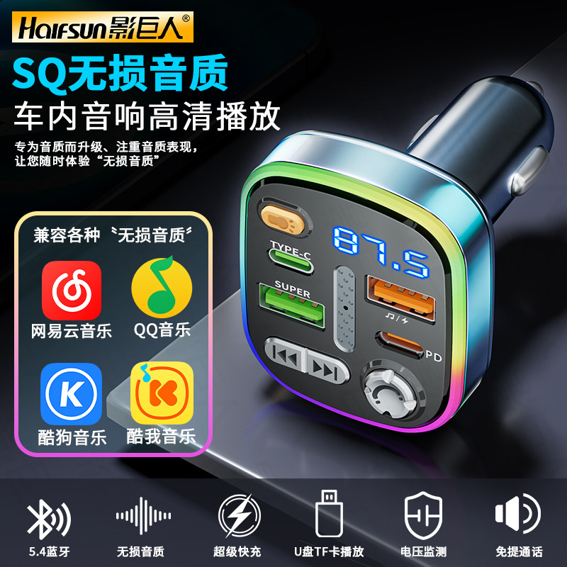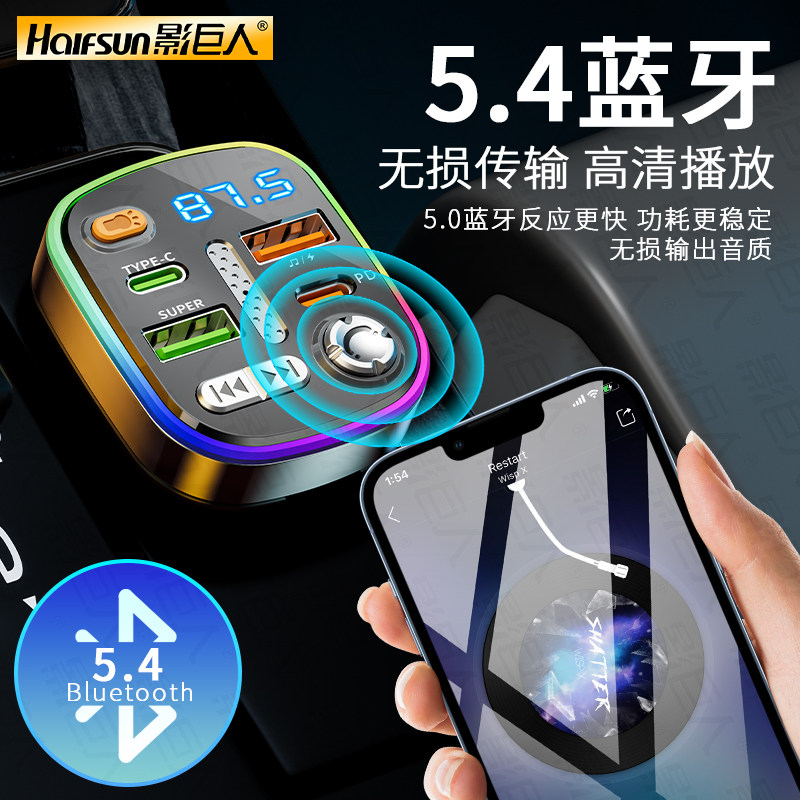 影巨人车载充电器超级闪快充蓝牙MP3接收器听歌高音质多功能新款