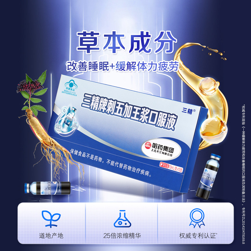 哈药三精牌刺五加王浆口服液中老年人男女改善睡眠缓解疲劳10支装