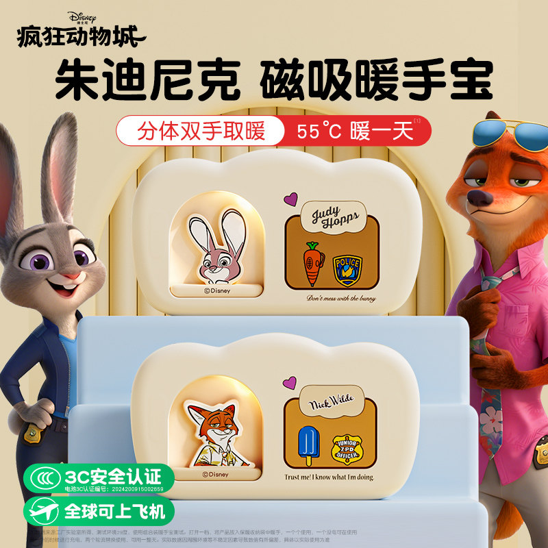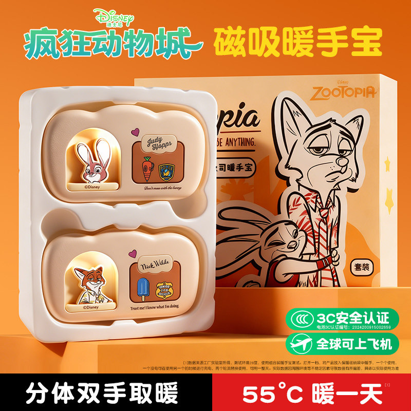 迪士尼疯狂动物城联名周边系列尼克朱迪玩具磁吸暖手宝圣诞节礼物