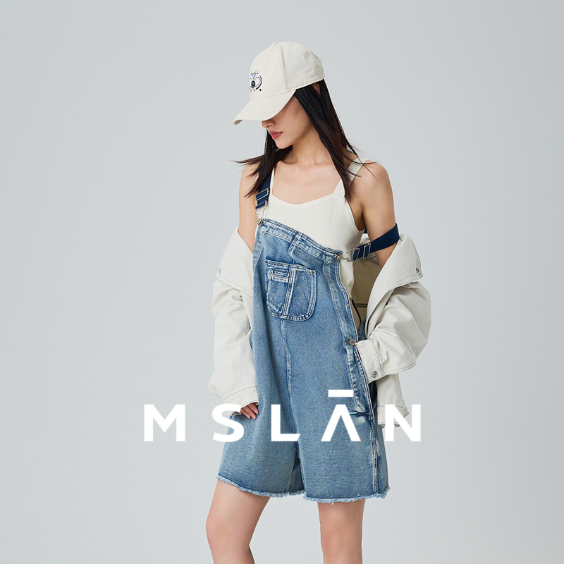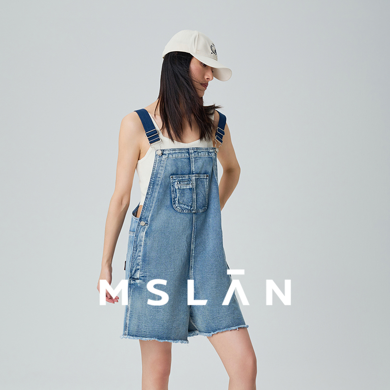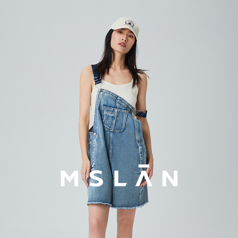 可调节背带/MSLAN春夏减龄小个子短款刺绣背带裤女连体裤MFBM5102