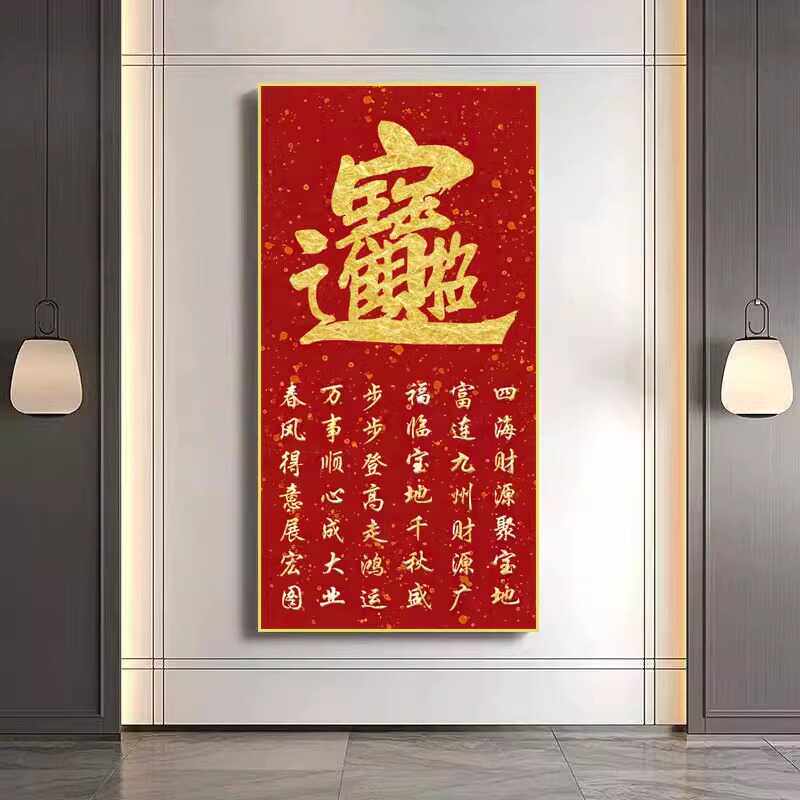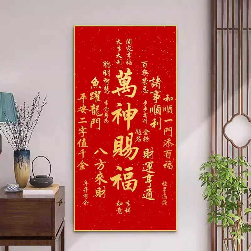 天官赐福玄关装饰自粘贴画新中式红色吉祥好寓意喜庆新年进门墙画