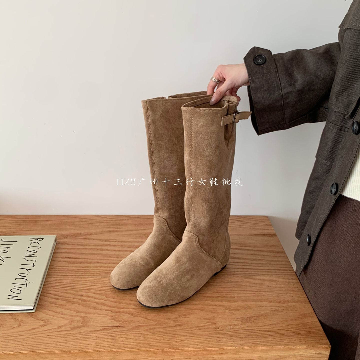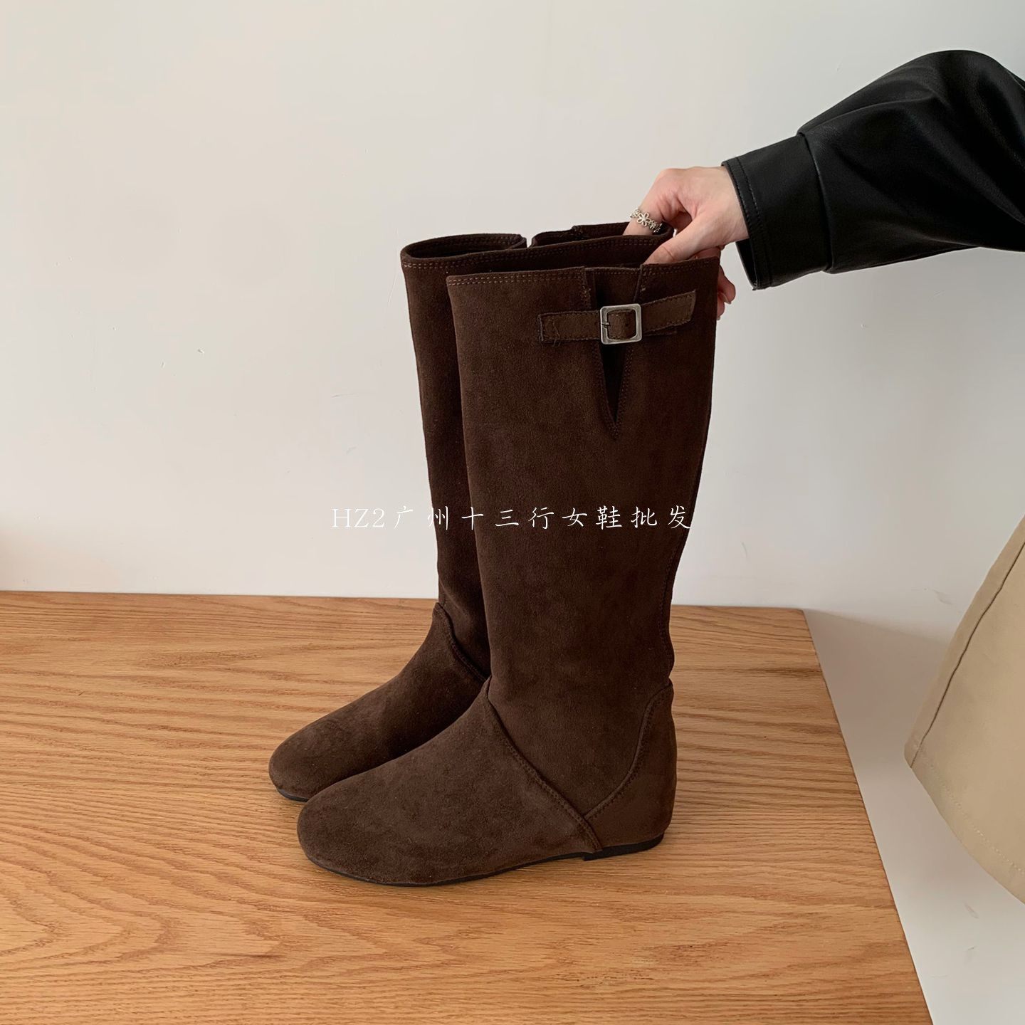 HZ2实拍复古绒面内增高长靴女2025秋冬新款百搭休闲马丁靴骑士靴