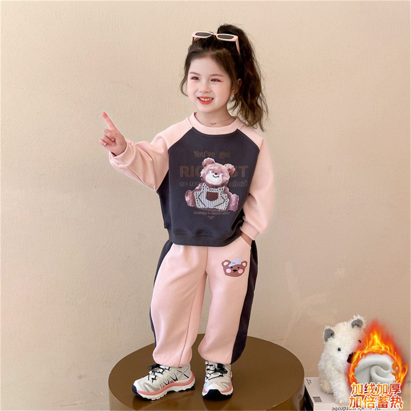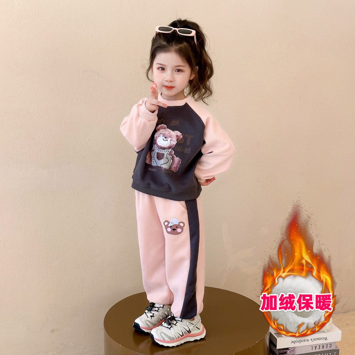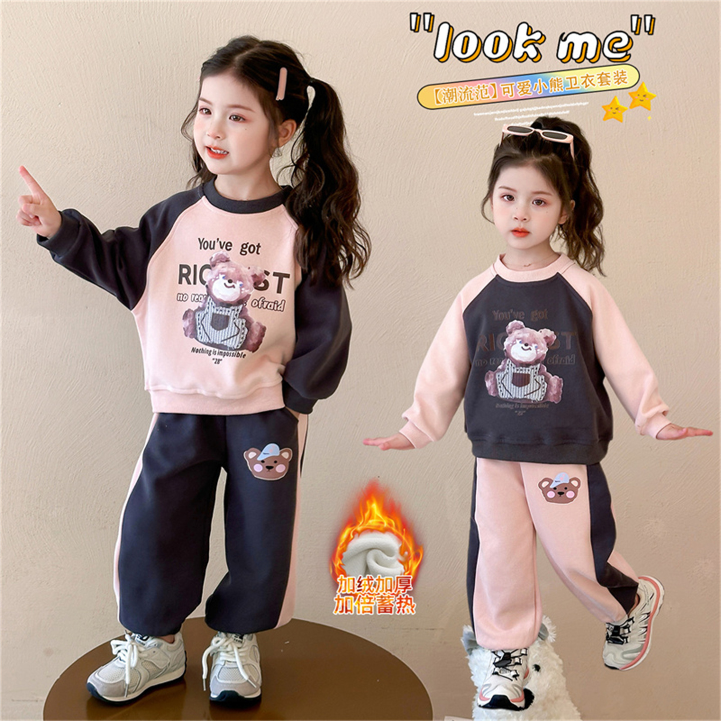 女童加绒套装秋冬装洋气小熊儿童卫衣宝宝冬季加厚女孩运动两件套