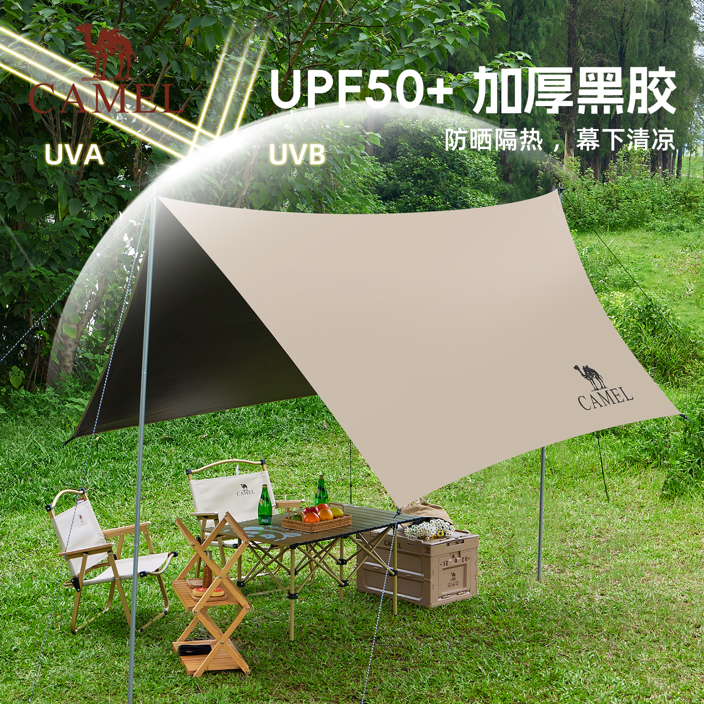 骆驼黑胶天幕帐篷露营遮挡布简易懒人速搭沙滩遮阳棚2025新款
