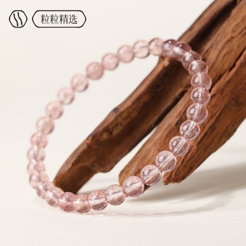 毕业级白水体草莓晶手链女冰种粉色水晶珠子散珠串珠单圈多圈手串