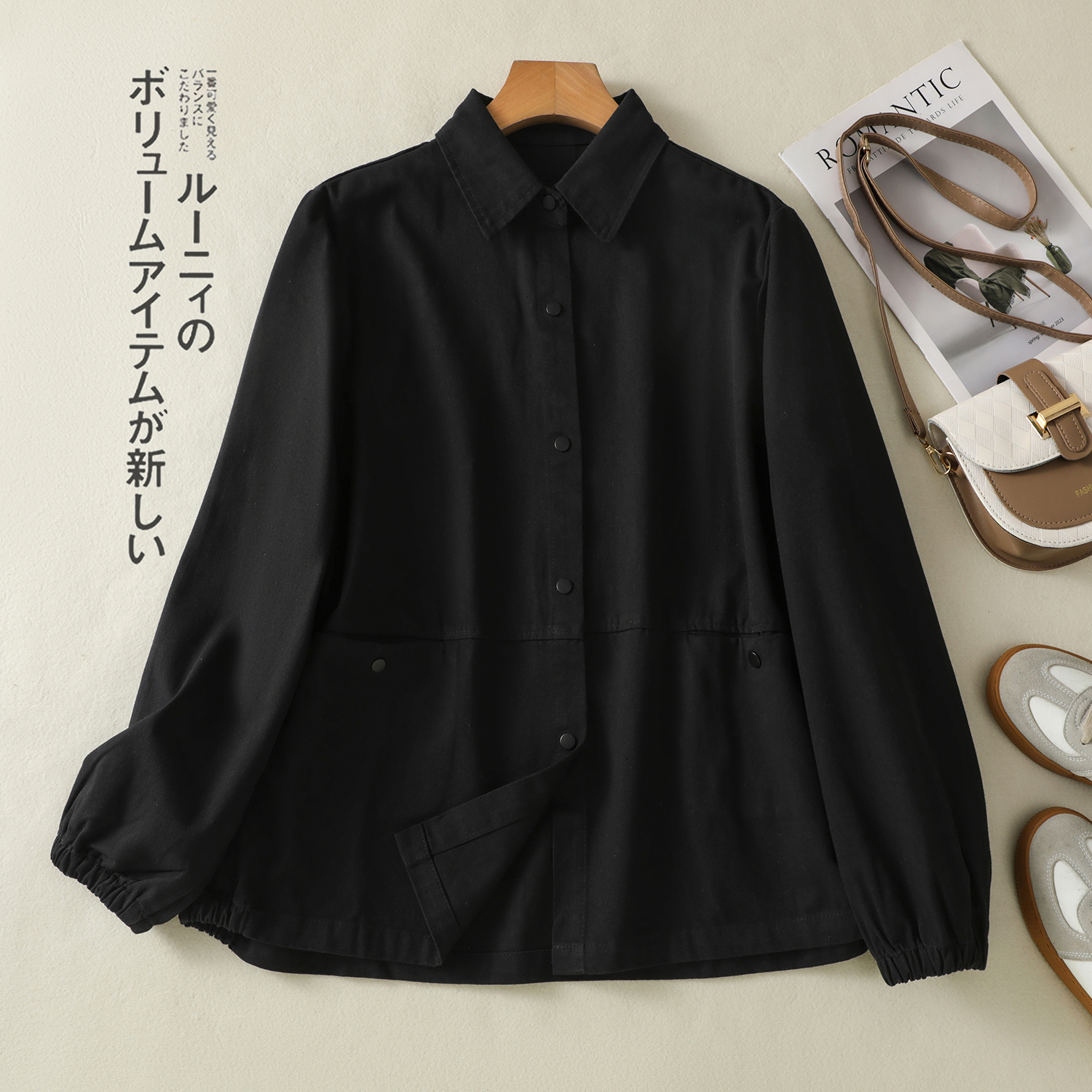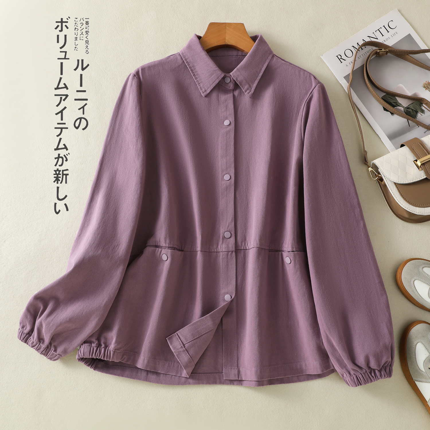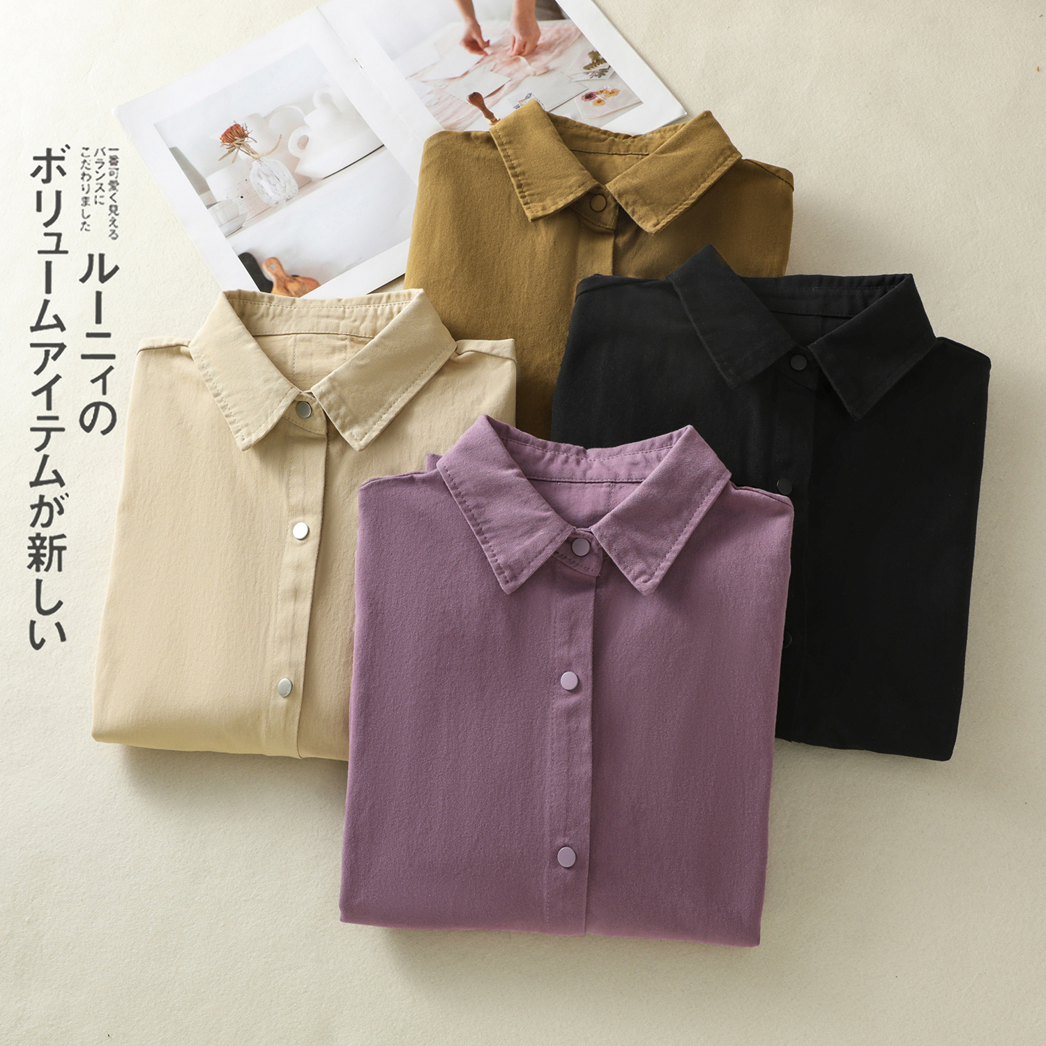实拍2025秋新款全棉斜纹休闲复古外套女宽松大码长袖衬衫外搭上衣