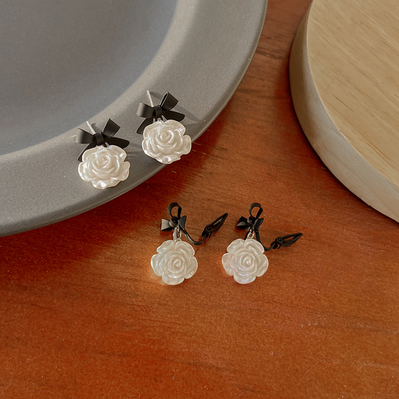 茶系山茶花耳夹无耳洞女新款复古可爱甜美耳环小众设计感高级耳饰