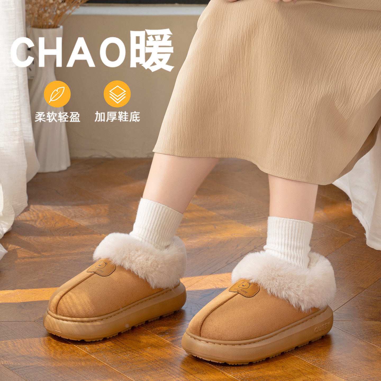 2025新款棉拖鞋女士冬季可外穿包跟毛绒保暖室内踩屎感厚底棉鞋男