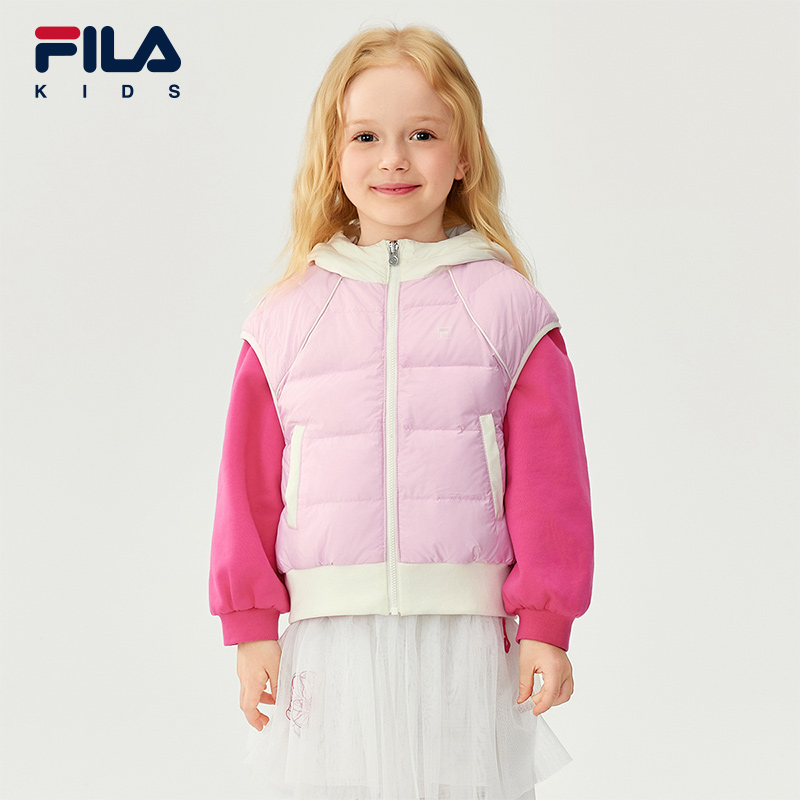 FILA KIDS斐乐童装女小童羽绒马甲2025冬季新款儿童连帽轻薄上衣