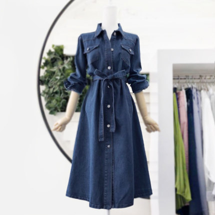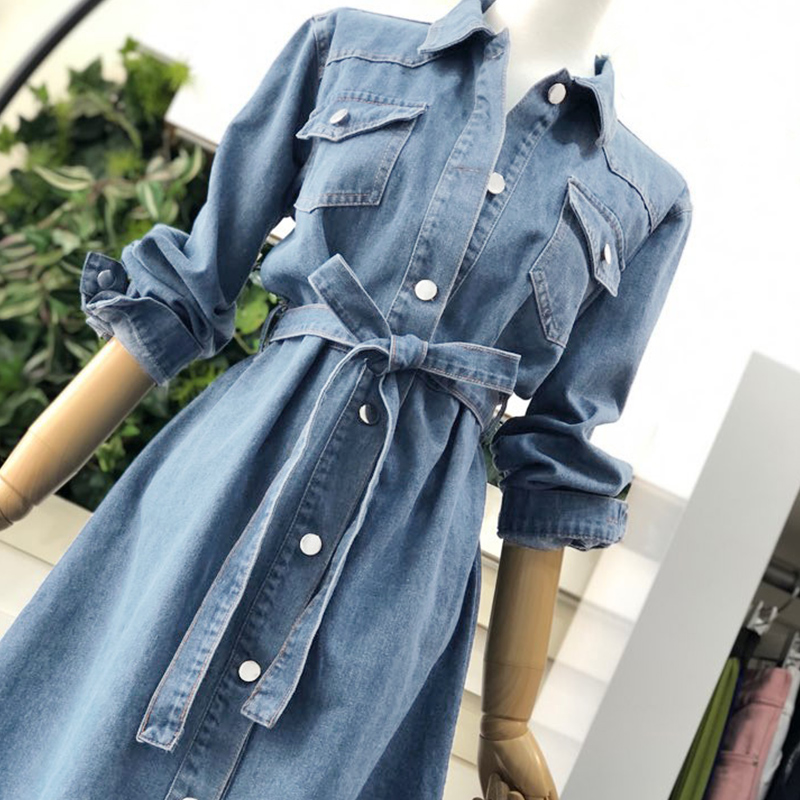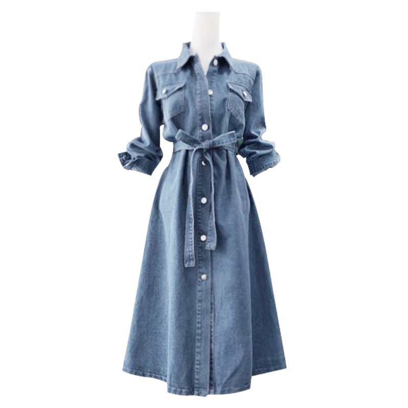 收腰显瘦牛仔连衣裙2025春秋新款流行女装气质时尚百搭衬衫系带裙