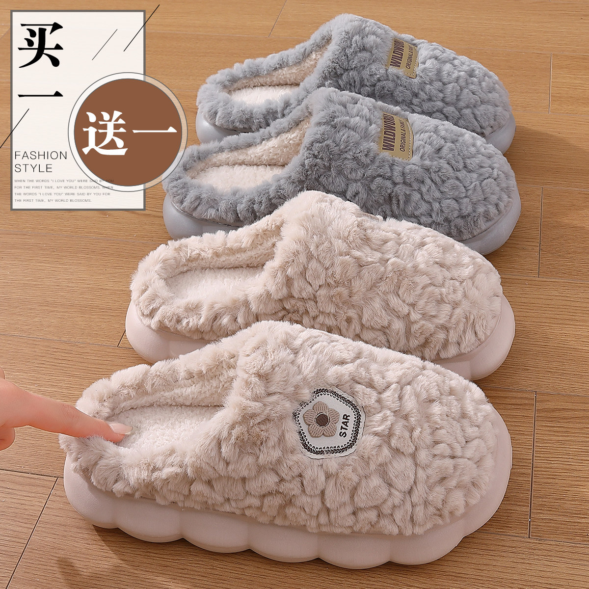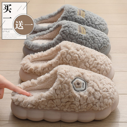 买一送一棉拖鞋女士冬季2025新款情侣家居一对防滑保暖毛绒棉拖男