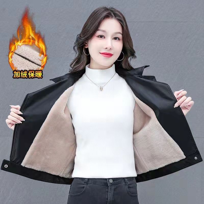 加厚绒皮衣女上衣短款外套减龄皮修身显瘦皮夹克2025秋冬新款洋气