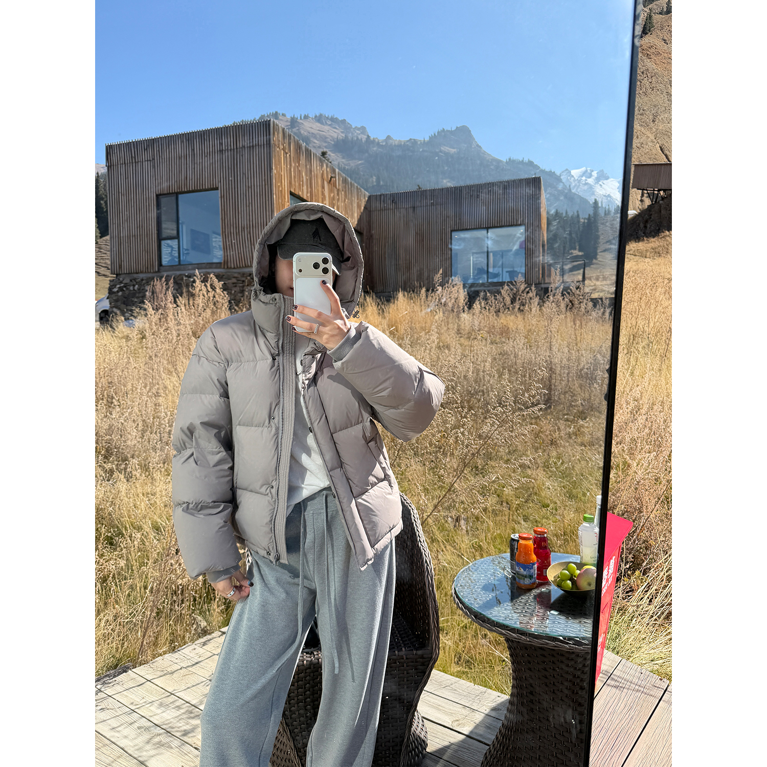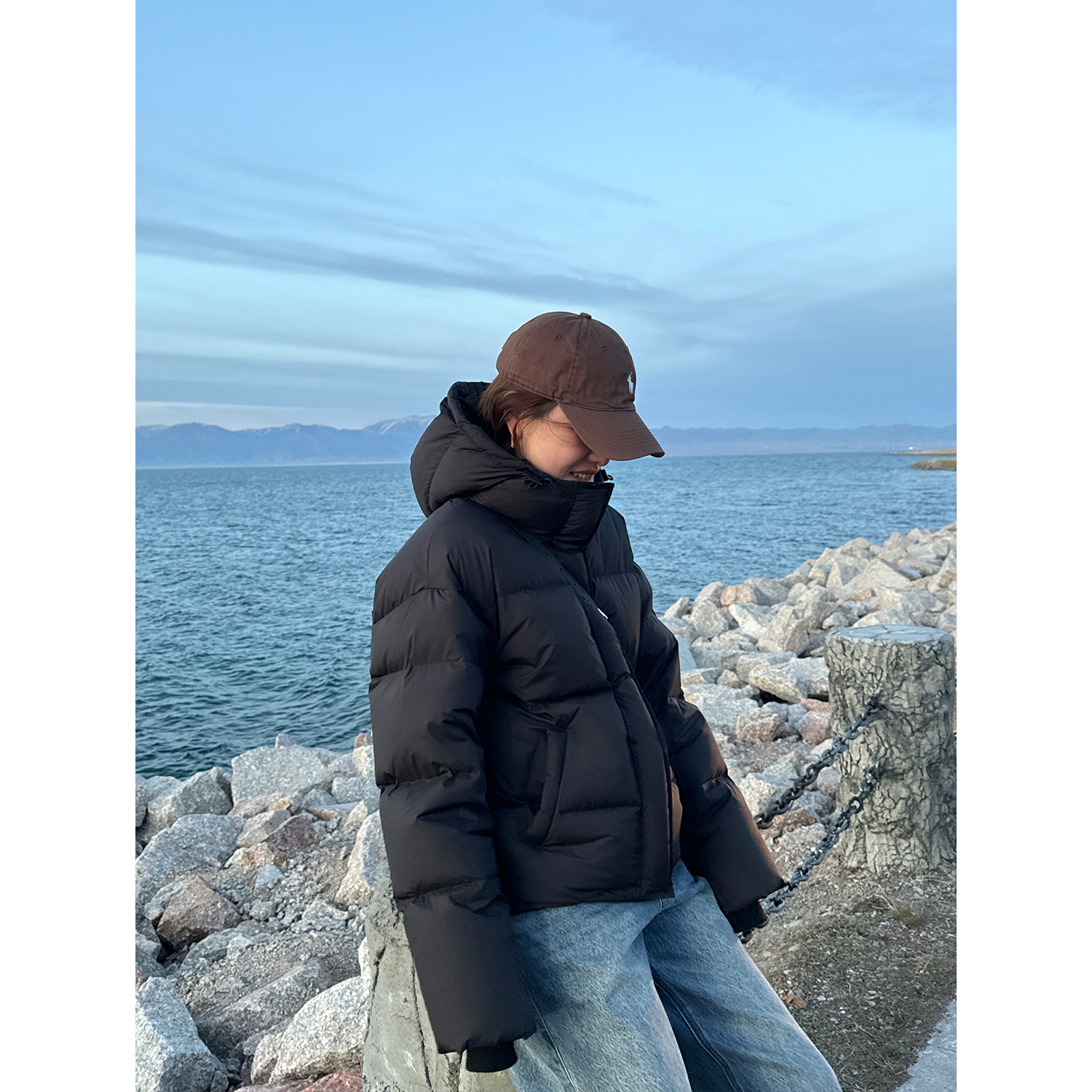 高充绒量连帽廓形鹅绒服